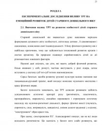 РОЗДІЛ 2. | ЕКСПЕРИМЕНТАЛЬНЕ ДОСЛІДЖЕННЯ ВПЛИВУ ТРТ НА ЕМОЦІЙНИЙ РОЗВИТОК ДІТЕЙ СТАРШОГО ДОШКІЛЬНОГО ВІКУ……………………………………22 | |