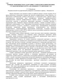 УРОВЕНЬ ТРЕВОЖНОСТИ И АДАПТАЦИИ У ГОРОДСКИХ И ИНОГОРОДНИХ СТУДЕНТОВ ПЕРВОГО КУРСА (НА ПРИМЕРЕ СТУДЕНТОВ ВГУЭС)