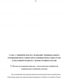 ГЛАВА 2. ЭМПИРИЧЕСКОЕ ИССЛЕДОВАНИЕ ЭМОЦИОНАЛЬНОГО ОТНОШЕНИЯ ПРЕДСТАВИТЕЛЕЙ РАЗЛИЧНЫХ ВОЗРАСТНЫХ ГРУПП К РЕКЛАМНЫМ РОЛИКАМ С ДЕМОНСТРАЦИЕЙ АГРЕСИИ 46