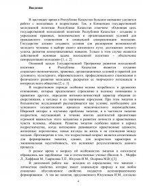 В настоящее время в Республике Казахстан большое внимание уделяется работе с молодёжью и подростками. Так, в Концепции государственной молодежной политики Республики Казахстан отмечено: «Основная цель государственной молодежной политики Республики Казахстан - создание и укрепление правовых, экономических и организационных условий для гражданского становления и социальной самореализации молодежи. Государство должно создавать условия для расширения возможностей молодого человека в выборе своего жизненного пути, достижении личного успеха, развития коммуникативных навыков. Только в этом случае окажется действенной основная задача молодежной политики - обеспечение самореализации молодежи» [1, с. 2].