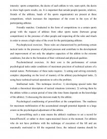 Psychological preparation of the athlete is a multifaceted pedagogical process. It is carried out at the basic level in the preparatory period of training and at the special - in the training period and at the stage of preliminary training before the competitions [1, p. 17].