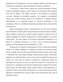 A distinction is made between general and special psychological training. General psychological training is closely linked to the educational and ideological work with the athletes. This applies especially to the formation of ideological conviction, education of personality properties. The program of psychological training must include activities aimed at the formation of a sporting character. Sportsmanship is an important element of successful performance at the competitions, where it is justifiably revealed and consolidated. But it is formed in the training process.