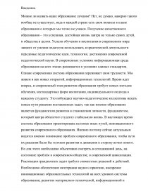 Можно ли назвать наше образование лучшим? Нет, не думаю, наверно такого вообще не существует, ведь в каждой стране есть свои нюансы в плане образования о которых мы точно не узнаем. Получение качественного образования – это успешная, достойная жизнь завтра не только самих детей, и общества в целом. Успехи обучения и воспитания в современном мире зависят от умения педагогов использовать в практической деятельности передовые педагогические идеи, технологии, достижения современной педагогической науки. В современных условиях информационная среда образования на всех этапах развивается в условиях единых стандартов. Однако современная система образования переживает свои трудности. Мы живем в век новых открытий, информационных технологий. Время идет вперед, и современный этап развития образования требует новых методов обучения, нестандартных форм воспитания, индивидуального подхода к каждому студенту. Это побуждает научно-педагогические коллективы искать новые пути решения поставленных задач, так как именно образование является фундаментом развития и становления личности, фундаментом, который завтра обеспечит студенту стабильную жизнь. В настоящее время система образования ориентирована на поиск иных путей, инновационного развития современного образования. Именно поэтому сейчас актуальным видится именно понимание проблем современного образования, чтобы пути их решения были бы толчком развития и движения в сторону вечно нового. Но для этого необходимо объективно смотреть в сегодняшний день, на состояние проблем в современном обществе, в современной цивилизации. Реализация грандиозных задач требует совместных решений и действий. Необходимо обеспечение интеграции науки и практики, внедрение инновационных образовательных технологий на всех уровнях системы образования; развитие материально-технической, информационной и научно-методической базы учреждений образования; оптимизация сети учебных заведений регионов на основе мониторинговых исследований, перспектив его социально-экономического развития. [1]