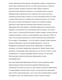 Современная система российского образования далека от идеала. Проблема существует и при чем не одна. Многие люди, которые далеки от системы образования и не входят в данную структуру, могут это не замечать. Данную проблему не понимают и в министерстве, ведь даже если брать ЕГЭ — это не идеальная система выяснения уровня образования учеников. Никто не берет во внимание такие факторы как, например, школьник может переволноваться, испугаться и перестать воспринимать данный ему материал. Также может быть роздан такой КИМ, который вообще не соответствует информации, изучаемой ребенком для подготовки к ЕГЭ. Многие дети пройденный материал на уроках забывают сразу, выйдя из-за парты, а как же вспомнить о нем на экзамене. Сейчас в школах не дают того объема информации, которого хватит для сдачи экзаменов, поэтому детям приходиться идти заниматься у репетиторов, обучение у которых сейчас далеко не дешёвое, поэтому дети, живущие в малообеспеченных семьях, сразу теряют шанс для поступления в престижный ВУЗ с хорошими баллами. Ученики перегружены теоретическим материалом и не знают, как применить его на практике. Сейчас абсолютно испорчено такое понятие, как слово «знание». Сейчас набор сведений выдают как знание. С течением времени изменяется всё: наша жизнь, быт, даже мы сами, а школа почему-то остаётся неизменной. Содержанием сегодняшнего образования не довольны все: и учителя, и ученики, и родители. На данный момент мы теряем школы, ведь обычные не профилированные школы, по сути, не дают представления ребенку о будущих профессиях, и ребенок не может определиться в каком направлении ему двигаться. Это и будет тем толчком в будущем, когда студент решит бросить какое-либо высшее учебное заведение, т.к. представления чему его будут там обучать не было. Поэтому школа должна уделять внимание каждому профилю, чтобы ребёнок понимал, что ему интересно и в каком направлении ему двигаться. Если углубляться в систему ЕГЭ и ГИА, то можно заметить, что ученику нельзя высказывать свою точку зрения. Сидя на занятиях по подготовке к ЕГЭ, мне лично говорили, что нельзя спорить с автором, а можно только поддерживать его точку зрения. Такие рамки ущемляют ребенка в творческой сфере, а она важна не меньше остальных. О каком творчестве может идти речь, когда нас учат ставить крестик в нужную клетку, писать сочинение по шаблону, руководствуясь одной целью – набрать как можно больше баллов! И от критериев – ни на шаг! Сам ЕГЭ представляет собой заучивания некого списка информации на выполнение тестовых заданий. Задачи развития и воспитания отходят на второй план. Ученик, который целый год изучал какой-либо предмет, может выпасть на столько сложный КИМ, что он не сможет набрать, то количество баллов, на которое он рассчитывал. И такое стечение обстоятельств влияет на будущее школьника, станет он студентом высшего учебного заведения или придется идти в СПО после 11 классов обучения в школе. А вообще ситуация в школе неоднозначная, так как связана не только с компетентностью ЕГЭ, но и с дисциплиной. Многие школьники, без зазрения совести, могут спокойно не появляться в школе неделями, грубить учителям, ужасно вести себя по отношению к другим ученикам, а в итоге им просто попадет от родителей. Но не только проблема идет со стороны учеников, но учителям безразлично, п