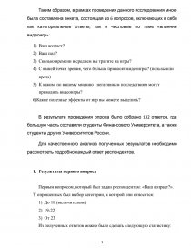 Таким образом, в рамках проведения данного исследования мною была составлена анкета, состоящая из 6 вопросов, включающих в себя как категориальные ответы, так и числовые по теме «влияние видеоигр»: