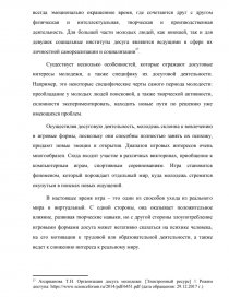 Ряд современных авторов-социологов рассматривают особенности реализации досуговой деятельности. Так, О.В. Назарой[2] рассматривает понятие «досуг» в соответствии с особенностями развития современной молодежи, а также во взаимосвязи с ее досуговыми интересами. Именно их автор выделяет как ключевой фактор социальной и культурной дифференциации.
