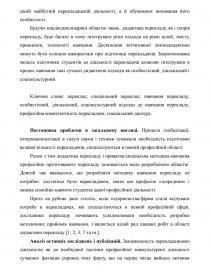 Ключові слова: переклад; спеціальний переклад; навчання перекладу; особистісний, діяльнісний, соціокультурний підходи до навчання перекладу; професійна компетентність перекладача; спеціальний дискурс.