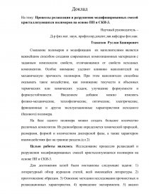 На тему: Процессы релаксации и разрушения модифицированных смесей кристаллизующихся полимеров на основе ПП и СКИ-3.