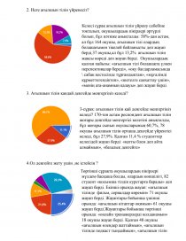 1 | Саған ағылшын тілі сабағына қатысқан ұнайды ма? | «Ия» жауабы (254 оқушы) | «Жоқ» жауабы (14 оқушы) | «Орташа» жауабы (3 оқушы) | «Бәрібір» «Кейде ия,кейде жоқ» «Кішкене ғана» (3 оқушы) | «Басында ұнайтын еді қазір ұнамайды» (1 оқушы) | «Норм», «50/50», «Мүмкін», «Қатты емес» (3 оқушы) | «Әр қалай» (2 оқушы) | |