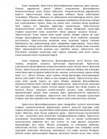 Адам ешқашан Аристотель философиясының негізі болған емес. Алайда, автордың алдыңғы зерттеулері көрсеткендей, Аристотель классикалық философиялық антропологияның атасы болған ежелгі философ болды. Аристотельдің антропология үшін өте маңызды ойлары мен идеялары оның басқа зерттеулерінде пайда болды, мысалы, силлогизмдер туралы ойлар және т.с.с. айтуға болады, ақыл туралы ойлар философқа категорияларды жіктеу үшін қажет болды, бірақ ол осы тақырып ішінде. Аристотельдің ақыл, адам және құдай туралы әр түрлі ойлары ешқашан философиялық антропологияның бөлігі ретінде қарастырылмаған. Аристотельдің индукция мен дедукция туралы іліміне сілтеме жасай отырып, бұл ойлар Адамға да қатысты болды. Ақылдың егжей-тегжейлі талдауы адам табиғатының ерекшеліктерін ашады және сонымен бірге трансценденттік құбылысты алдыңғы қатарға шығарады. Аристотель мен Плотин ілімдерін салыстыра отырып, жан мен адамның ішкі әлемі туралы ілімді конспектілеуге болады.