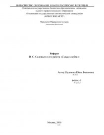 В. C. Соловьев и его работа «Смысл любви »