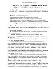 ДОСЛІДЖЕННЯ ВПЛИВУ ПЛАСТИЧНОЇ ДЕФОРМАЦІЇ І РЕКРИСТАЛІЗАЦІЇ НА СТРУКТУРУ МЕТАЛІВ