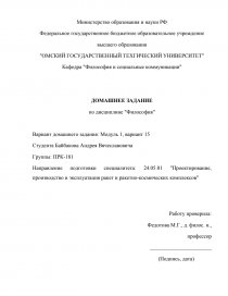 Направление подготовки специалитета: 24.05.01 "Проектирование, производство и эксплуатация ракет и ракетно-космических комплексов"