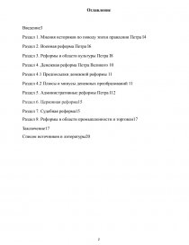 Тема моего реферата - «Реформы Петра Великого». И как мне кажется его имя является действительно интересной темой для размышления, поскольку деятельность Петра I показала все плюсы и минусы проводимых преобразований в России. В середине 17 века в нашей стране произошли значительные изменения, затронувшие все стороны жизни общества, и превратившие нашу страну в Российскую империю. Да, в нашей стране не было крупных промышленных предприятий, которые способствовали бы развитию военной промышленности, сельского хозяйства и экономики в целом. Мы не имели выходы к морям через которые могли бы развивать внешнюю торговлю. Отсюда следует, что Россия не могла иметь личный военного флота, который охранял бы ее границы. Сухопутная армия строилась по устаревшим принципам и состояла из дворянского ополчения. Оно неохотно покидало свои поместья для военных походов, их вооружение и военная подготовка отставали от передовых европейских армий. Между старым, боярами и дворянами шла ожесточенная борьба за власть. И поэтому Петр I ставил перед собой важные задачи: реорганизовать армию, построить флот, овладеть побережьем моря, создать отечественную промышленность, перестроить систему управления, показать мощь страны и улучшить экономику в целом. Пётр I понимал, что Россию нужно открыть с новой стороны. Для поднятия авторитета государства он начинает прививать европейские традиции во всех сферах жизнедеятельности общества(социальной, экономической, военной и политической) Благодаря его острому уму, расчётливости, бесстрашию и авантюризму в экономике возникают промыслы, промышленные предприятия, возрастает роль внутренней и внешней торговли, а также увеличивается спрос на сельскохозяйственные продукты. Также утверждается абсолютистская форма монархии, создаётся регулярная русская армия и совершенствуется флот. Развивается медицина, здравоохранение, строятся и Академии наук. Школы помогли дать начальное образование нескольким тысячам людей, что способствовало культурному развитию. Происходило строительство городов, печатались газеты и книги. У людей менялось мировоззрение ко всему происходящему. Пётр во время царствования старался думать не только о государстве, но и о всем народе. Он не побоялся решиться на такой смелый шаг и действительно укрепить нашу державу. Поэтому можно с лёгкостью сказать, что Пётр Великий был человек, которому присуще важные дипломатические качества. Они говорят нам о