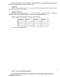 - развіваць уменне аргументаваць, матываваць, даказваць, сінтэзаваць, карыстацца фактамі тэксту, характарызаваць вобраз, вызначаць сэнс выяўленчых сродкаў, развіваць мысленчыя здольнасці і культуру мыслення