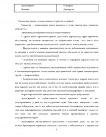 Государственное устройство. Чтобы рассмотреть виды государственного строя необходимо дать понятие самому государству. Государство - это нечто целое, состоящее из частей. Можно сказать, что государство — совокупность граждан. Дадим определение государства через гражданина, для этого выясним значение последнего. Чтобы ответить на поставленный вопрос мы определим рамки гражданина, то есть общий критерий по которым человек считался гражданином. Во-первых, мы не можем назвать гражданином по месту жительства человека. Другими словами, если индивид житель государства, то это не значит, что он гражданин, иначе гражданином считался бы каждый раб, находящийся на территории страны. Также в список граждан не попали бы старики и дети так, как и те и другие в силу своего возраста имеют неполные гражданские обязанности, поэтому и абсолютными гражданами их назвать нельзя. Следует упомянуть и иноземцев, которые могут по некоторым соглашениям участвовать в суде, то есть быть истцом и ответчиком. Лучше всего безусловное понятие гражданина может быть определено через участие в суде и власти (с точки зрения руководства, исключая иноземцев). Некоторые из должностей бывают временными, то есть их нельзя занимать вторично или только через определённый срок, относительно других же ограничения по времени нет — сюда относится участие в суде и в народном собрании. Именно участники суда или народного собрания подходят под определение гражданина так, как они выносят важнейшие решения, следовательно, в их руках сосредоточена власть. Но если учитывать особенности различных государственных устройствах, нужно сделать определение универсальным, так как наше характерно в большей степени для демократического государства. В обобщённой форме гражданин — это тот, кто принимает участие в законосовещательной или судебной власти государства. Таким образом, государство — это совокупность таких граждан, достаточная для самостоятельного существования.
