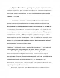 1. Вступление. В данной статье я расскажу о том, как компьютерные технологии влияют на окружающую среду, какие проблемы и риски они создают, и какие решения и перспективы они предлагают. Я также дам несколько примеров проектов и инициатив, связанных с этой темой.