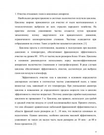 Наибольшее распространение в системах пылеочистки получили циклоны. Циклоны широко применяются для очистки от пыли вентиляционных и технологических выбросов во всех отраслях народного хозяйства. На практике система улавливания частиц создается путем придания запыленному потоку закрученного или вращательного движения, ограниченного цилиндрическими стенками. Частицы осаждаются при отбрасывании на стенки. Такое устройство называется циклоном. [1]