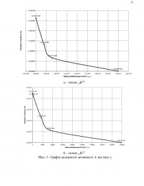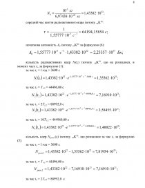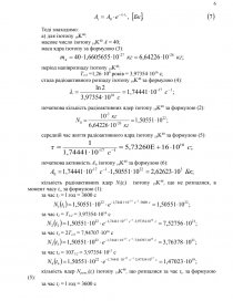 Розрахувати кількість ядер, що розпадаються за задані інтервали часу, активність ядер та побудувати графік залежності активності і кількості ядер від часу. Визначити середній час життя ізотопа.