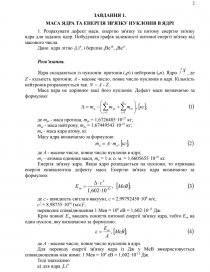 1. Розрахувати дефект маси, енергію зв'язку та питому енергію зв'язку ядра для заданих ядер. Побудувати графік залежності питомої енергії зв'язку від масового числа.