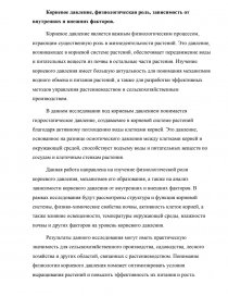 Данная работа направлена на изучение физиологической роли корневого давления, механизмов его образования, а также на анализ зависимости корневого давления от внутренних и внешних факторов. В рамках исследования будут рассмотрены структура и функция корневой системы, физико-химические свойства почвы, активность клеток корней, а также влияние освещенности, температуры окружающей среды, влажности почвы и других факторов на уровень корневого давления.