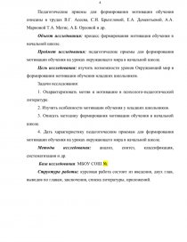 Предмет исследования: педагогические приемы для формирования мотивации обучения на уроках окружающего мира в начальной школе.