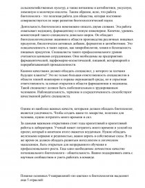 Какими качествами должен обладать специалист, у которого за плечами будущее планеты? Это не только большая ответственность специалистов в области генной инженерии и охраны окружающей среды, но и серьезная ответственность за новые открытия в области фармацевтики и медицины. Такой специалист должен быть любознательным и эрудированным человеком. Наблюдательность, терпение и сосредоточенность способствуют качественной работе специалиста.