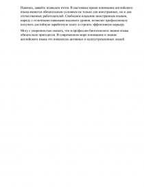 Актуальность данной работы заключается в формировании у будущих абитуриентов правильного понимания важности английского языка для достижения больших карьерных высот в этой профессии.