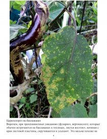 Обычно всевозможные грибковые заболевания проявляются на листьях баклажан в виде пятен, а не всего пожелтения листовой пластины, поэтому болезни идентифицировать легче. Например, при фитофторе появляются коричневые пятна на листьях баклажан со светло-зеленой каймой; при альтернариозе – маленькие пятна бурого цвета, которые со временем некротизируются; при церкоспорозе – мелкие хлоротичные пятна круглой формы, которые со временем буреют; при антракнозе – овальные бурые пятна на листьях баклажан; при бактериальной пятнистости листья покрываются мелкими черными пятнами с желтой каемкой.