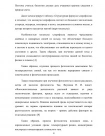 Первая глава является теоретической. В ней рассмотрены понятие фотосинтеза, процессы, которые происходят во время фотосинтеза, а также процесс появления фотосинтеза на нашей планете. Во второй главе изложен процесс становления науки и выявления фотосинтеза в биологии, а также особенности проведения урока биологии в 10 классе на тему «фотосинтез».