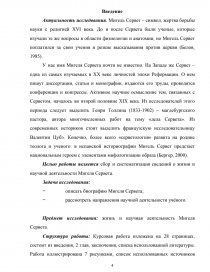 Целью работы является сбор и систематизация сведений о жизни и научной деятельности Мигеля Сервета.