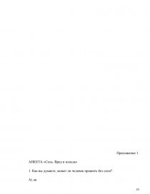 4)Провести анкетирование детей 2 «б» класса о пользе и вреде соли для человека и окружающего мира.