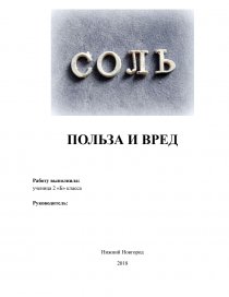 Цель работы – изучить, какую роль играет соль в жизни человека, в чем вред и польза.