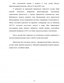 Бык заболел утром 25.07.2021 г. Во время очередного кормления животного была обнаружена припухлость в области запястного сустава левой грудной конечности. На ощупь тестоватой консистенции. Лечебная помощь не оказывалась. Ранее животное не болело. Остальные животные без подобных признаков болезни.