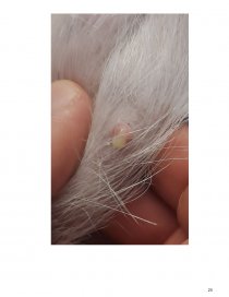 Тварина стала більш спокійною, обережною, повільною, не бажала залишати місця-лігва, збільшився апетит. Через 2 дні у Лілу збільшились молочні залози і почали секретувати рідину, схожу на молоко, черево збільшилося в об’ємі, тварина почала проявляти агресію, щодо господарів; прагнула бути на самоті.