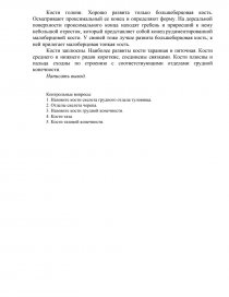 На занятии изучают расположение костей грудного отдела туловища в скелете. Осматривают грудные позвонки, ребра, грудную кость. Подсчитывают их количество у разных видов домашних животных. Затем приступают к изучению строения отдельных костей.