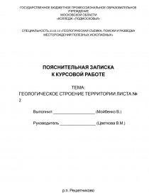 Основная цель курсовой работы: закрепить и развить приобретённые навыки анализа геологической карты и тектонической структуры, полученные в ходе изучения курса структурной геологии и геологического картирования.