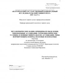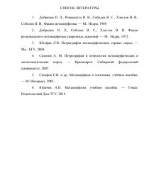 При написании курсовой работы была поставлена цель в наиболее краткой форме изложить учебный материал, касающийся сведений о метаморфических фациях: обобщить данные по минералогии каждой из этих фаций и привести характеристику соответствующих им минеральных ассоциаций; рассмотреть зависимость состава минералов в парагенезисах от термодинамических условий; изучить вопросы формирования и распространения важнейших метаморфогенных полезных ископаемых.