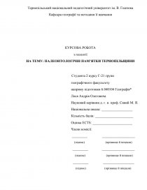 Актуальність теми. Вивчення палеонтологічних пам’яток має важливе значення для геології (в першу чергу для палеонтології та палеогеографії). По-перше, їх вивчення дає можливість встановити відносний вік гірських порід. По-друге, вивчаючи палеонтологічні пам’ятки, можна досліджувати скам’янілі рештки організмів, похованих у шарах осадових порід (організми індикатори). Таким чином, вивчаючи палеонтологічні пам’ятки, можна відтворити фізико-географічні умови минулих геологічних епох, простежити еволюцію Землі і живих організмів.