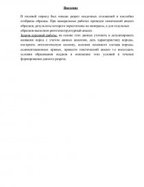 В полевой период был описан разрез осадочных отложений и послойно отобраны образцы. При камеральных работах проведен химический анализ образцов, результаты которого пересчитаны на минералы, а для отдельных