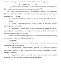 - определить к какой части области фильтрации относится участок проектирования водозабора, тип гидрогеологических условий фильтрации и предполагаемый вид расчетной схемы.