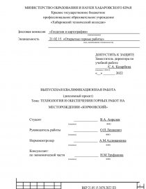 Технология и обеспечения горных работ на месторождении "Корфовский"