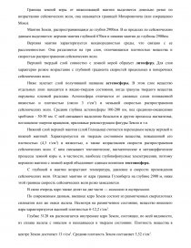 Ускорение силы тяжести. Увеличение силы тяжести обычно связано с присутствием более плотного вещества, уменьшение указывает на меньшую плотность. Величина ускорения силы тяжести на поверхности в среднем составляет 982 см/с2 (при 983 см/с2 - на полюсе и 978 см/с2- на экваторе), с глубиной сначала увеличивается, затем быстро падает. Максимальное значение ускорения силы тяжести достигает в основании нижней мантии у границы с внешним ядром 1037 см/с2. В пределах ядра Земли ускорение силы тяжести начинает значительно уменьшаться, доходя в центре до 0.
