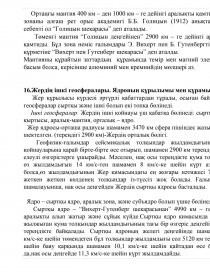 14 | Жердің ішкі геосфералары. Жер қыртысы, оның құрамы мен құрылымы | ||