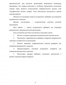 Поэтому важное значение в настоящее время имеет анализ ассортимента приборов для измерения артериального давления (АД), которые в последнее время значительно расширили свое присутствие на рынке. Их ассортимент составляет продукция отечественных и зарубежных производителей. Для аптечных организаций, являющихся основными продавцами этих товаров населению и лечебным учреждениям, актуальной задачей также является осуществление товароведческого анализа этой специфической группы товаров. Этим обусловлена актуальность данной курсовой работы.