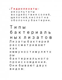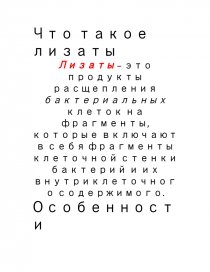 Лизаты – это продукты расщепления бактериальных клеток на фрагменты, которые включают в себя фрагменты клеточной стенки бактерий и их внутриклеточного содержимого.