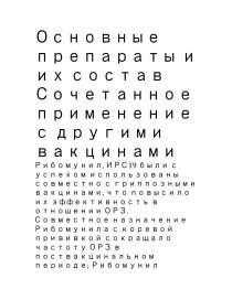 Рибомунил, ИРС19 были с успехом использованы совместно с гриппозными вакцинами, что повысило их эффективность в отношении ОРЗ. Совместное назначение Рибомунила с коревой прививкой сокращало частоту ОРЗ в поствакцинальном периоде; Рибомунил ускоряет иммунный ответ на прививку что свидетельствует о выраженном иммуномодулирующем его влиянии.