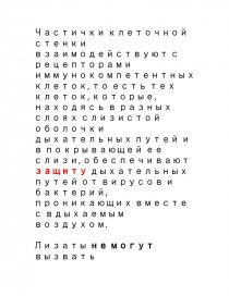 Частички клеточной стенки взаимодействуют с рецепторами иммунокомпетентных клеток, то есть тех клеток, которые, находясь в разных слоях слизистой оболочки дыхательных путей и в покрывающей ее слизи, обеспечивают защиту дыхательных путей от вирусов и бактерий, проникающих вместе с вдыхаемым воздухом.