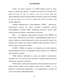 Конечная стадия инфекции - синдром приобретенного иммунодефицита (СПИД) - возникает в результате разрушения иммунной системы. СПИД определяется наличием одного или нескольких «оппортунистических» заболеваний (других заболеваний, вызванных снижением иммунитета).