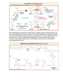 Наружная митохондриальная мембрана проницаема для многих веществ, а внутренняя – не проницаема почти не для чего. ПВК поступает в митохондрию путём симпорта с протоном. В митохондрии она подвергается биотин-зависимой пируваткарбоксилазной реакции, образуется ЩУК. ЩУК подвергается малатдегидрогеназной реакции под действием митохондриальной формы малатдегидрогеназы. Происходит восстановление ЩУК до L-малата. Через соответствующий переносчик L-малат оказывается в цитоплазме, где подвергается обратимой реакции, катализируемой цитоплазматической формой малатдегидрогиназы, происходит формирование ЩУК. ЩУК при участии фосфоенолпируваткарбоксикиназы превращается в макроэргическое производное – фосфоенолпируват.